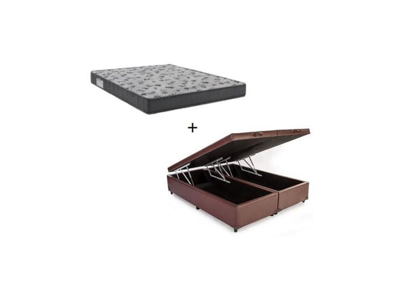 Cama Box Baú Casal Bipartido 138 Tecido Sintético Marrom Com Colchão D