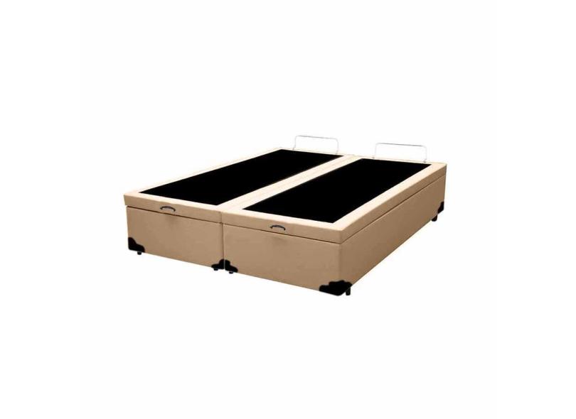 Cama Box Baú Casal Bipartido AColchoes Sintético Bege 41x138x188