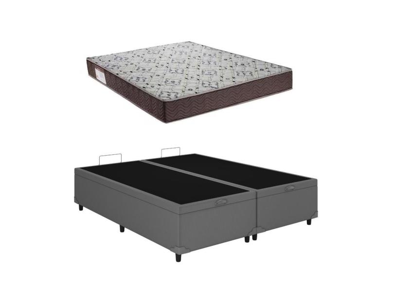 Cama Box Baú Casal Bipartido Blindado Colchão Iso 150 Espuma D45 138x188 Cinza - Ortobom