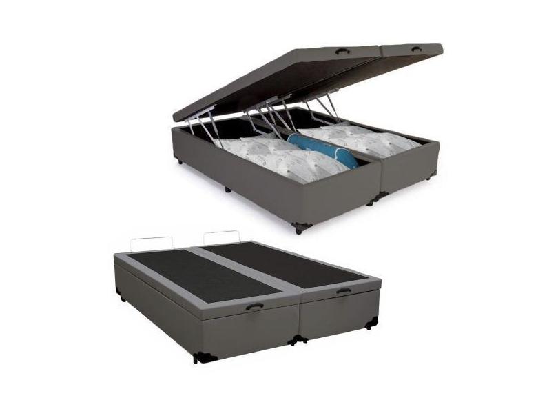 Cama Box Baú Casal Bipartido Sintético Cinza EMTH 138x188x40 - Empório