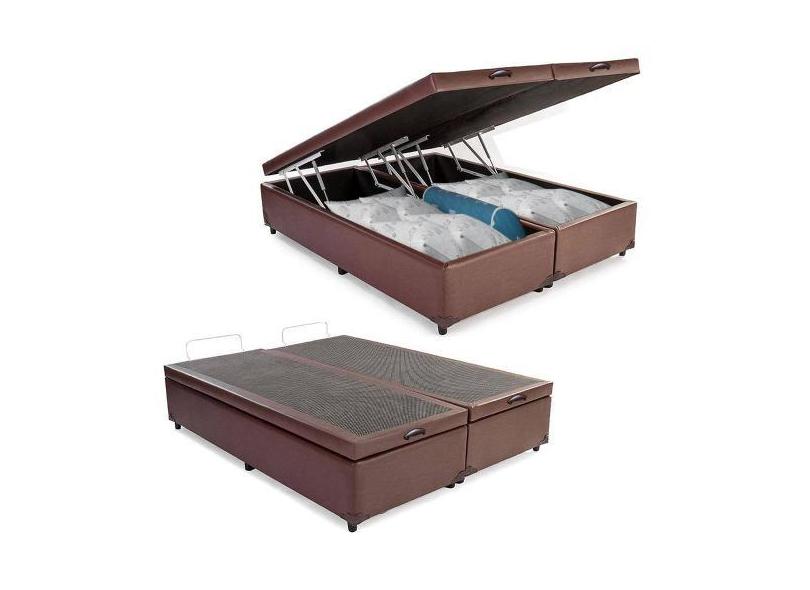 Cama Box Baú Casal Bipartido Sintético Marrom EMTH 138x188x40 - Empóri