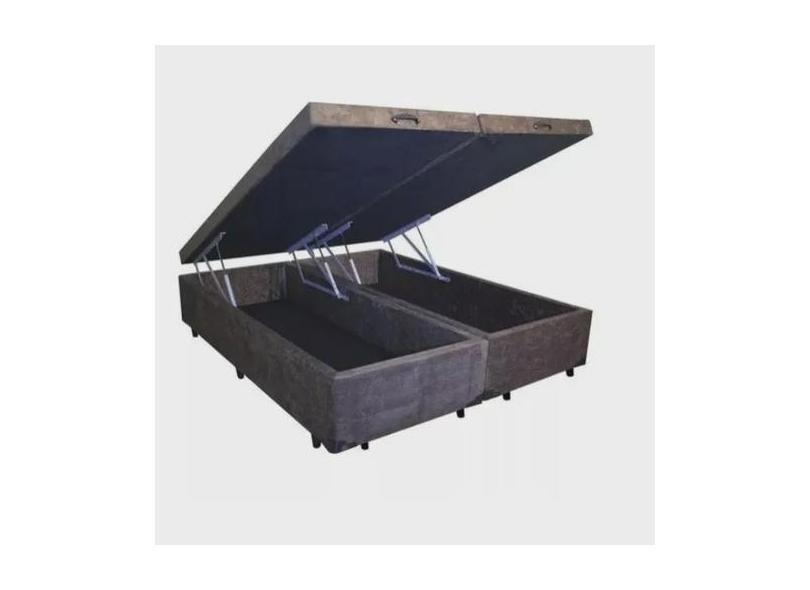 Cama Box Baú Casal Bipartido Suede Marrom - Real Comfort Estofados