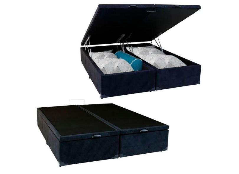 Cama Box Baú Casal Bipartido Suede Sereneprime Preto 138x188x44