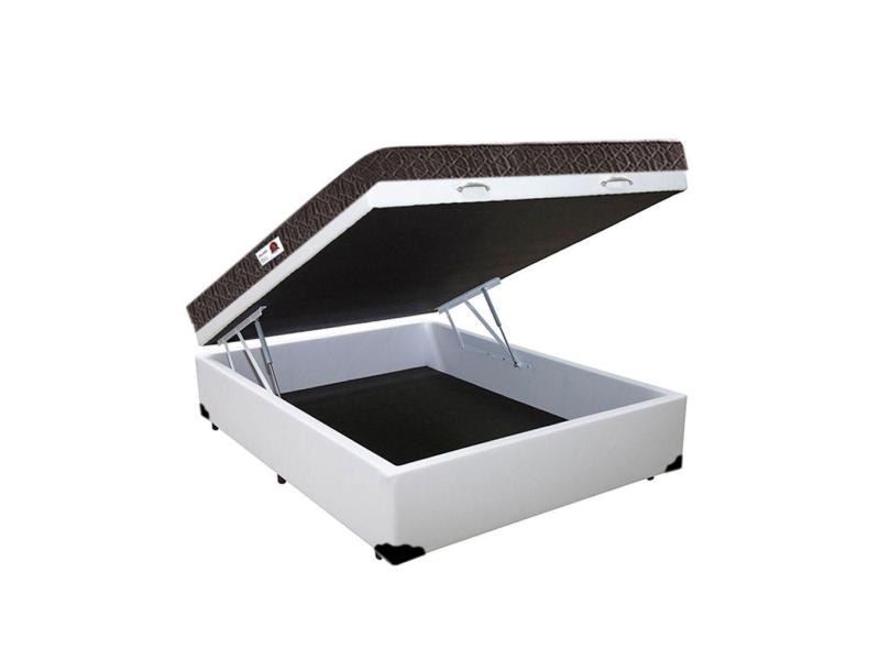 Cama Box Baú Casal Branco + Colchão Mola Bonnel Serra Negra
