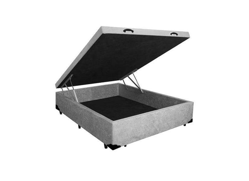 Cama Box Baú Casal Cinza Blindado Madeira 138x188x41