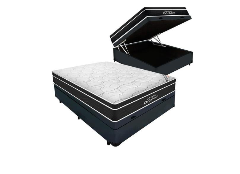 Cama Box Baú Casal Cinza + Colchão De Molas Ensacadas - Ortobom - Elegant SuperPocket - 138x188x70cm