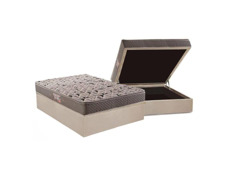Cama Box Baú Casal: Colchão Anatômico Herval AG65 Fort Black Firme Pillow Top + Base CRC Suede Clean(138x188)