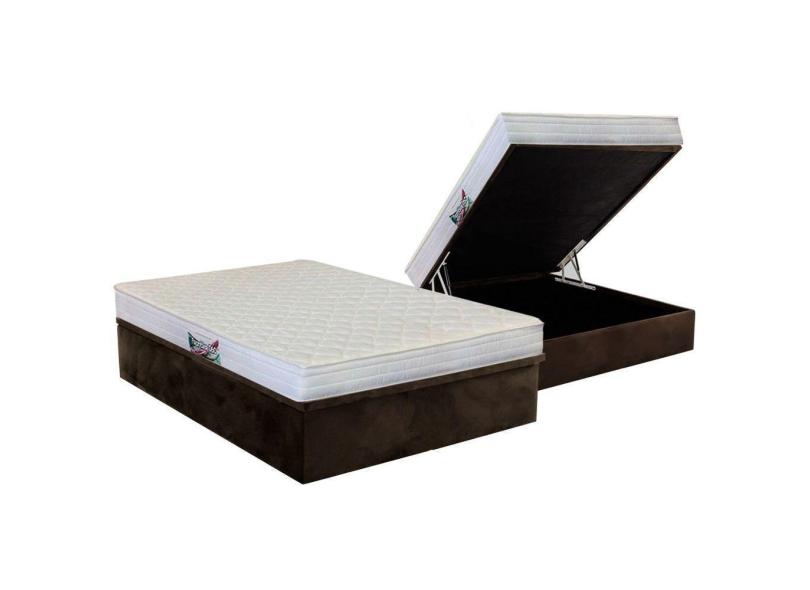 Cama Box Baú Casal: Colchão Anatômico Herval D28 / Ag65 Frontier + Base Crc Suede Brown(138x188)