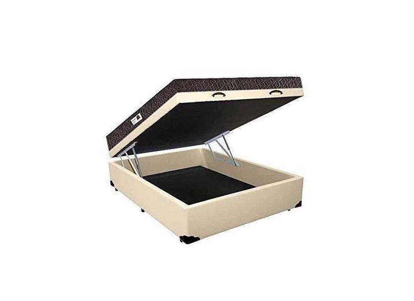 Cama Box Baú Casal Colchão Classic Mola Ensacada + Box Sintético Bege Serra Negra 67X138X188