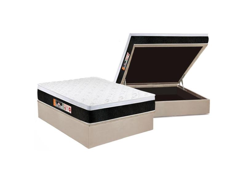 Cama Box Baú Casal: Colchão Espuma Castor D45 Black e White Air Euro Pillow + Base crc Suede Clean(138x188)
