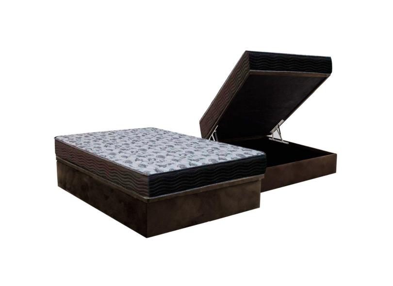 Cama Box Bau Casal Colchao Espuma D33 Ortobom Ep Iso 100 Ultra Firme Base Crc Suede Brown 138X188
