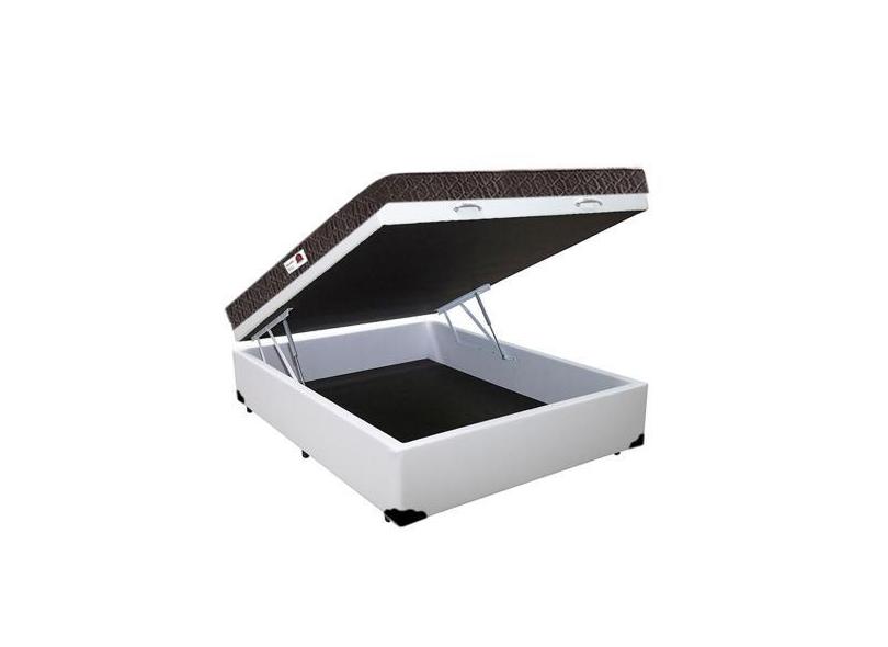 Cama Box Baú Casal Colchão Espuma D45 Bordado + Box Sintético Branco R