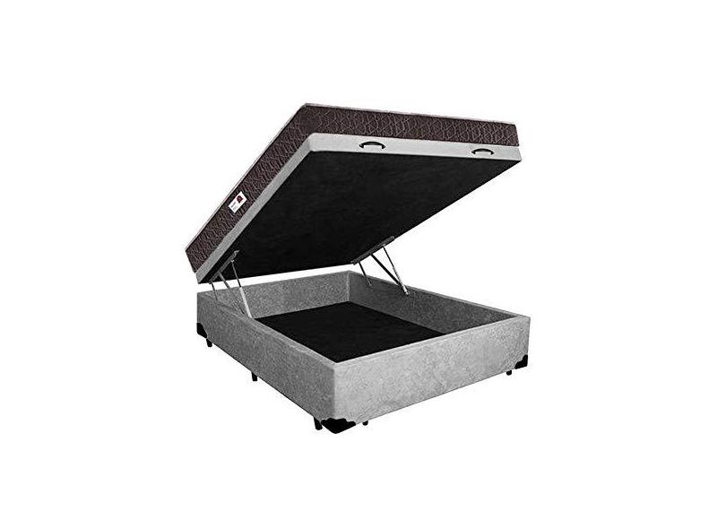 Cama Box Baú Casal Colchão Espuma D45 Bordado + Box Suede Cinza Serra Negra 67x138x188
