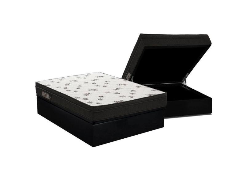 Cama Box Baú Casal: Colchão Espuma D45 Ortobom Light + Base Crc Suede Black(138X188)