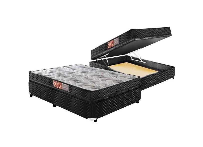 Cama Box Baú Casal: Colchão Espuma D45 Paropas Pasquale + Base CRC Suede Black(138x188)