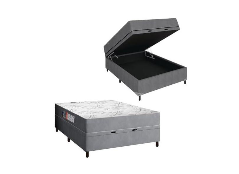 Cama Box Baú Casal Colchão Espuma Egito 138x188x60cm Cinza/Branco Portobel - Suporta até 100kg por Pessoa