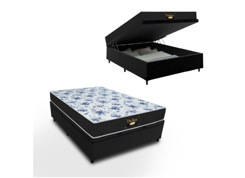 Cama Box Baú Casal Colchão Espuma Paulista Gazin 138x188x61cm Preto/Branco - Suporta até 80kg por pessoa