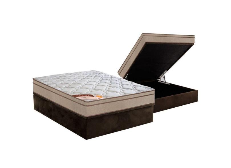 Cama Box Baú Casal: Colchão Molas Bonnel Castor Revolution + Base Crc Suede Brown(138X188)