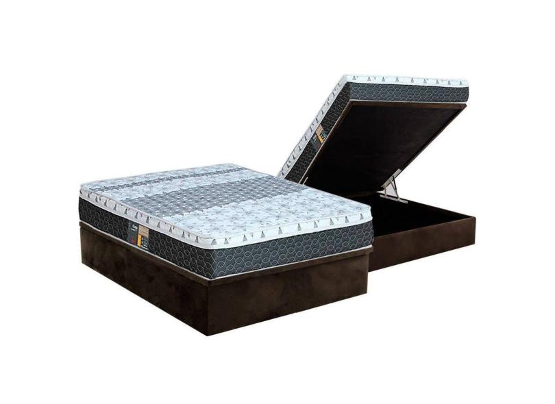 Cama Box Baú Casal: Colchão Molas Bonnel Castor System Class One Face + Base CRC Suede Brown(138x188)