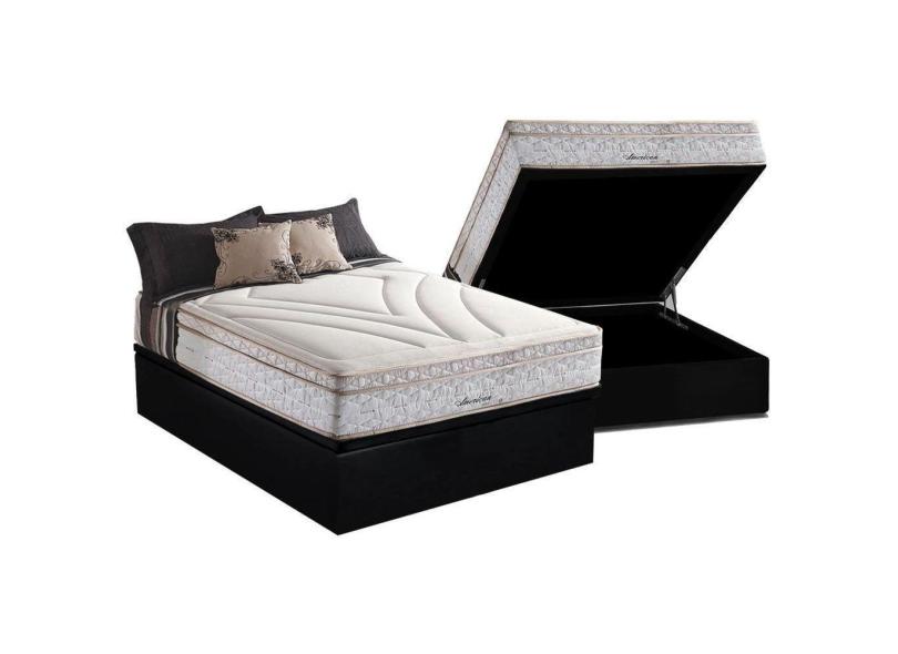 Cama Box Baú Casal: Colchão Molas Herval Maxspring American + Base Crc Suede Black(138X188)
