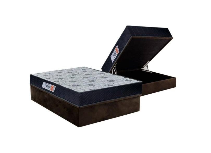 Cama Box Baú Casal: Colchão Ortopédico Orthoflex Foggia Sogni Unic Face + Base CRC Suede Brown(138x188)