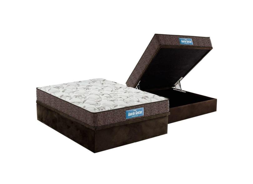Cama Box Baú Casal: Colchão Ortopédico Probel D28 / ep Guarda Costas PróMiddle Double Face + Base crc Suede Brown(138x188)