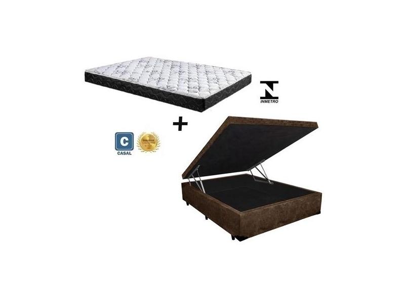 Cama Box Baú Casal Confort Suede Marrom + Colchão Casal Confort Molas Ensacada 71x138x188