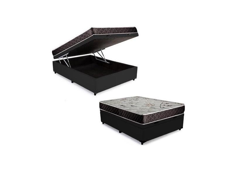 Cama Box Baú Casal Conforto Sintético Preto + Colchão Casal Conforto Espuma D33 20x138x188