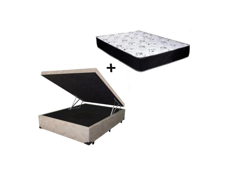 Cama Box Baú Casal Conforto Suede Bege + Colchão Casal Conforto Espuma D23 17x138x188