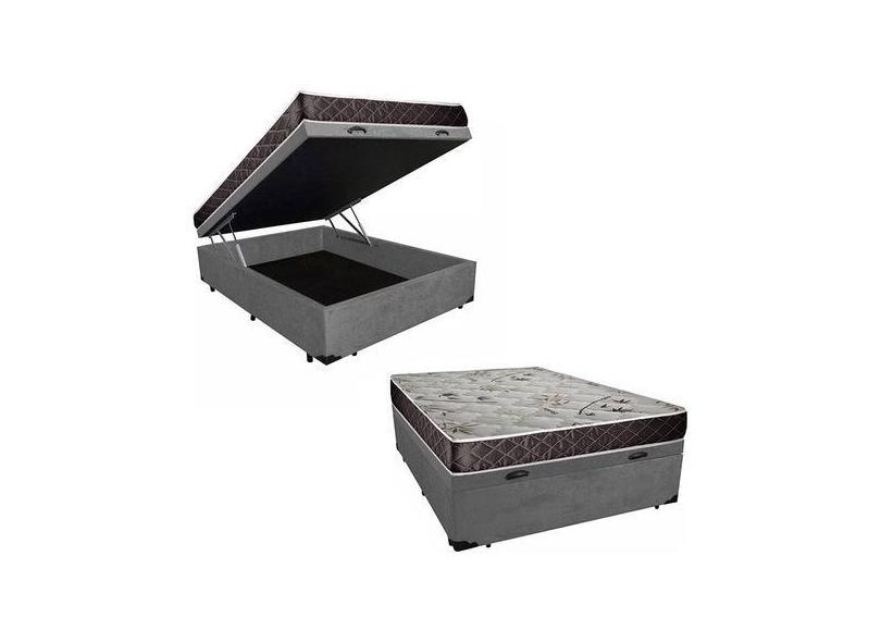 Cama Box Baú Casal Conforto Suede Cinza + Colchão Casal Conforto Espuma D23 17x138x188