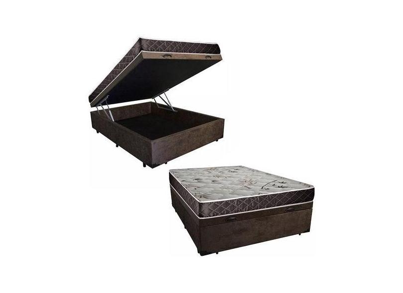 Cama Box Baú Casal Conforto Suede Marrom + Colchão Casal Conforto Espuma D33 17x138x188