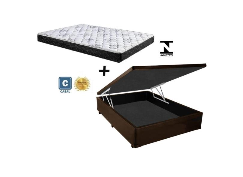 Cama Box Baú Casal Green Marrom + Colchão Espuma D33 138x188x8
