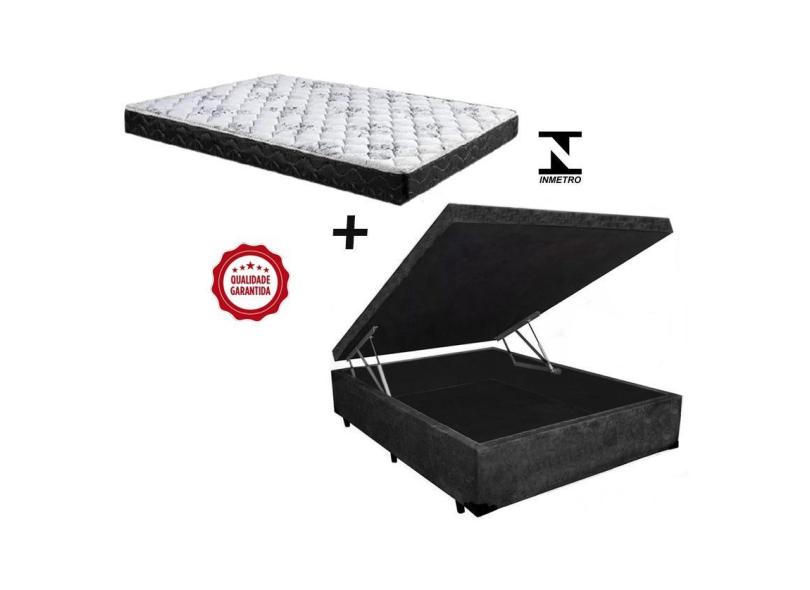 Cama Box Baú Casal Green Preto Suede + Colchão Espuma D28 138x188x14