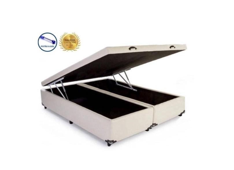 Cama Box Baú Casal Luxo Bege Bipartido Com Pistão A Gás - 138x188x41