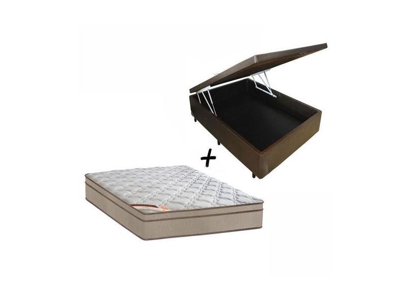 Cama Box Baú Casal Marrom + Colchão Molas Castor Revolution Tecnopedic
