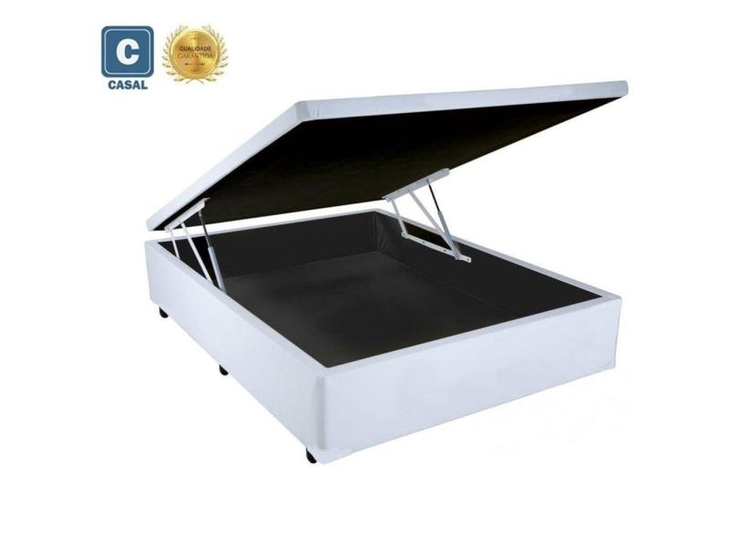 Cama Box Baú Casal Premium AColchões Corino Branco 41x138x188