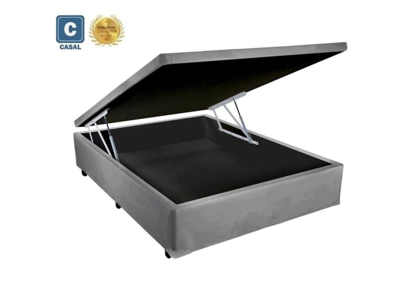 Cama Box Baú Casal Premium AColchões Corino Cinza 41x138x188
