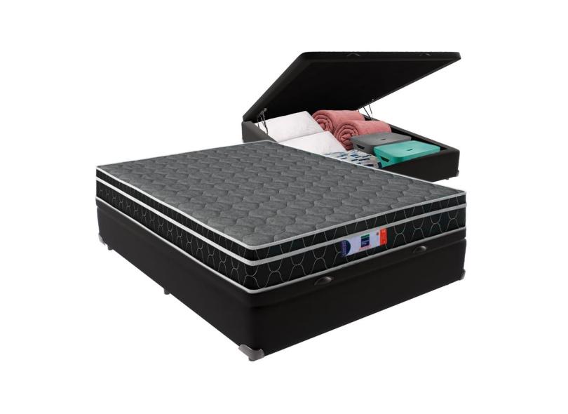 Cama + Box Baú Casal Preta Colchão Resistente 18cm D33 Comfort Prime 138x188