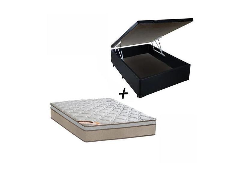 Cama Box Baú Casal Preto + Colchão Molas Castor Hibrido Revolution 138