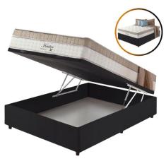 Cama Box Baú Casal Preto + Colchão Molas Ensacadas Houston Pillow Inn 138x188x70cm