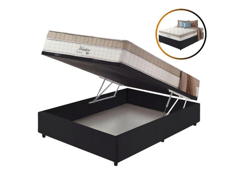 Cama Box Baú Casal Preto + Colchão Molas Houston 138cm
