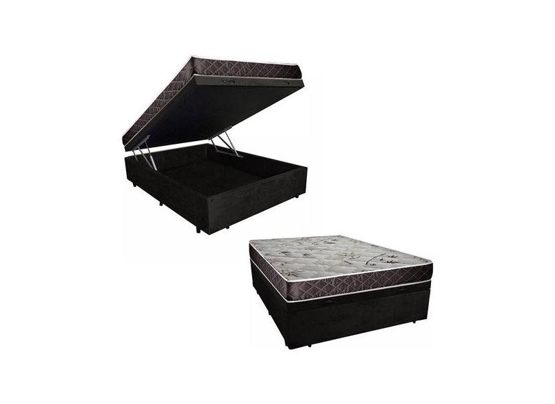 Cama Box Baú Casal Resistence Suede Preto + Colchão Casal Resistence Espuma D23 20x138x188