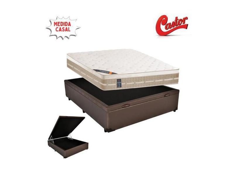 Cama Box Baú Casal Sintético + Colchão Castor Molas Bonnel Premium Tec