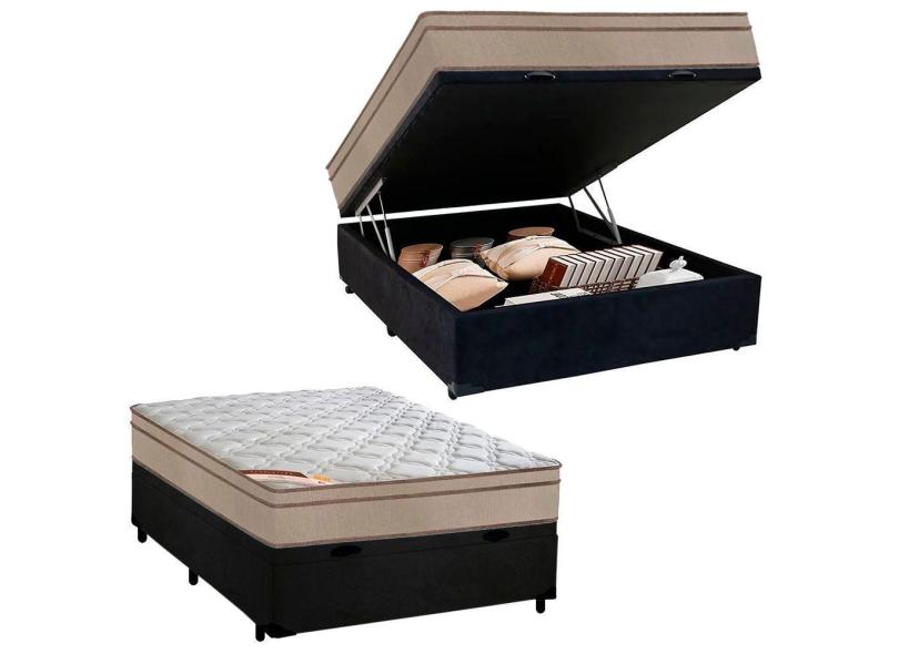 Cama Box Baú Casal Suede + Colchão Casal Molas Tecnopedic Revolution Castor 138x188x71cm Cor:preto