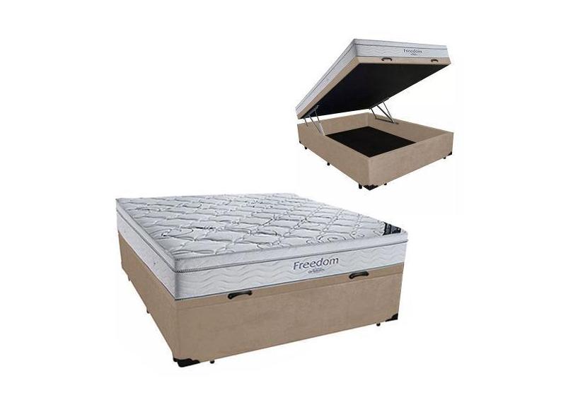 Cama Box Baú Casal Suede + Colchão Molas Ensacadas Freedom Ortobom 75X