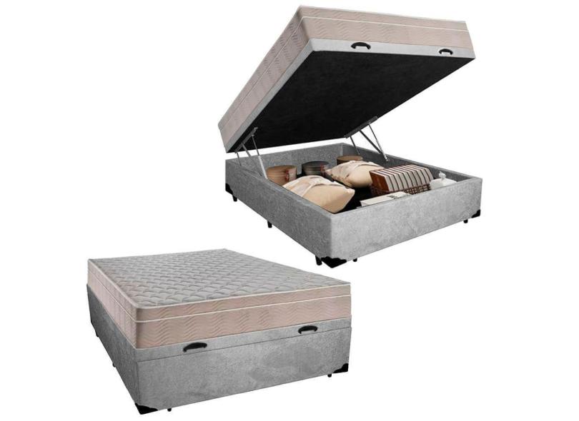 Cama Box Baú Casal Suede + Colchão Sereneprime Molas Ensacadas 138x188x69 Cor:cinza