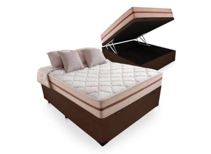 Cama Box Baú Casal Tecido Sintético Marrom com Colchão de Molas Ensacadas - Anjos - Classic