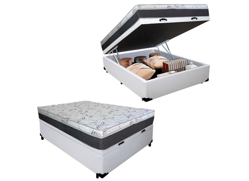Cama Box Baú Casal Viúva Sintético + Colchão Castor Molas Tecnopedic Class 128x188x67