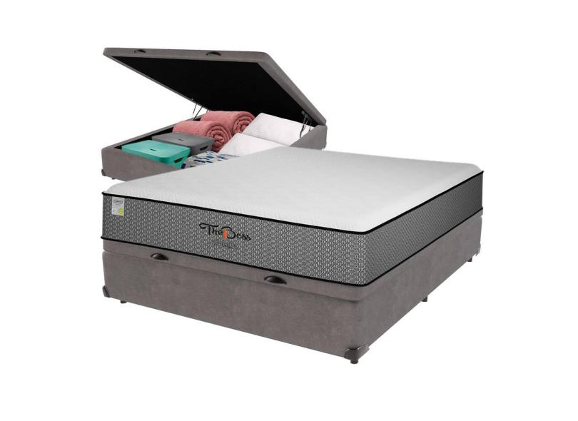 Cama Box Baú Cinza e Colchão Casal The Boss Molas Ensacadas Unique