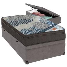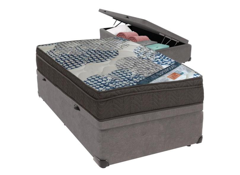 Cama Box Baú Cinza e Colchão iso Superpocket Molas Ensacadas Solteiro Ortobom
